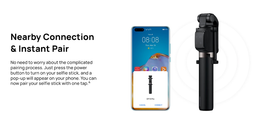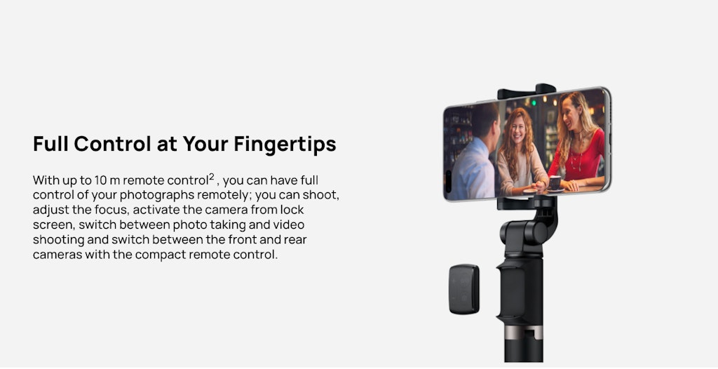 - Huawei CF15R Pro tripod and selfie stick is compatible with all smartphones that are from 56 to 85 mm wide.