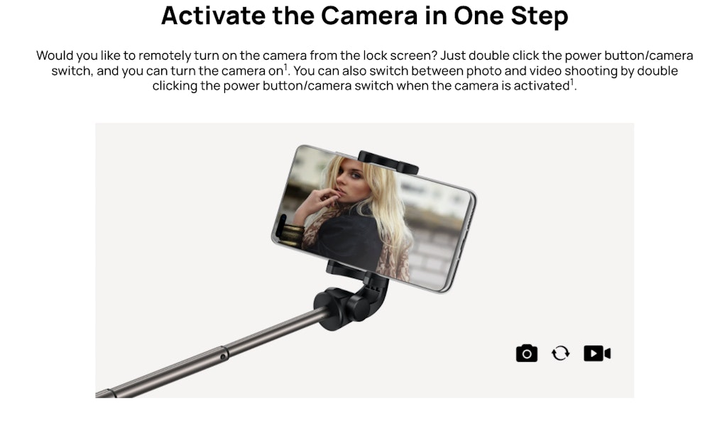 - Bluetooth remote control for the convenient shooting of pictures and videos within 10m range.