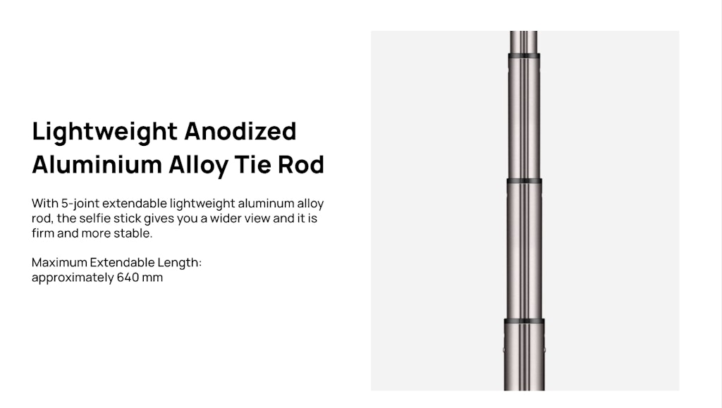 - Light and compact design for easy portability and 5 stages extendable stick.