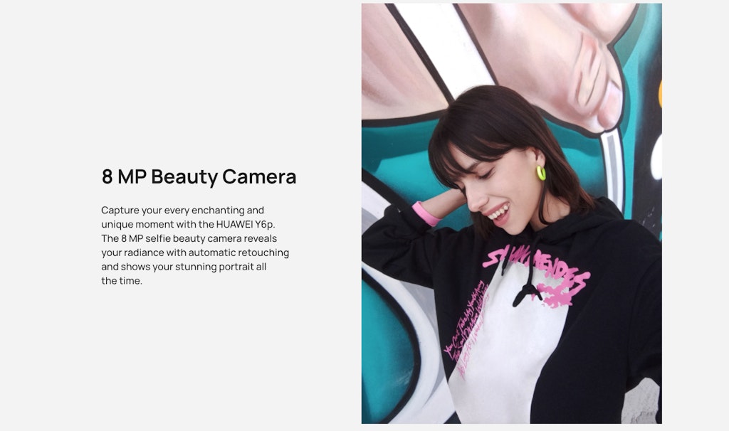 - The 8 MP selfie beauty camera reveals your radiance with automatic retouching and shows your stunning portrait all the time