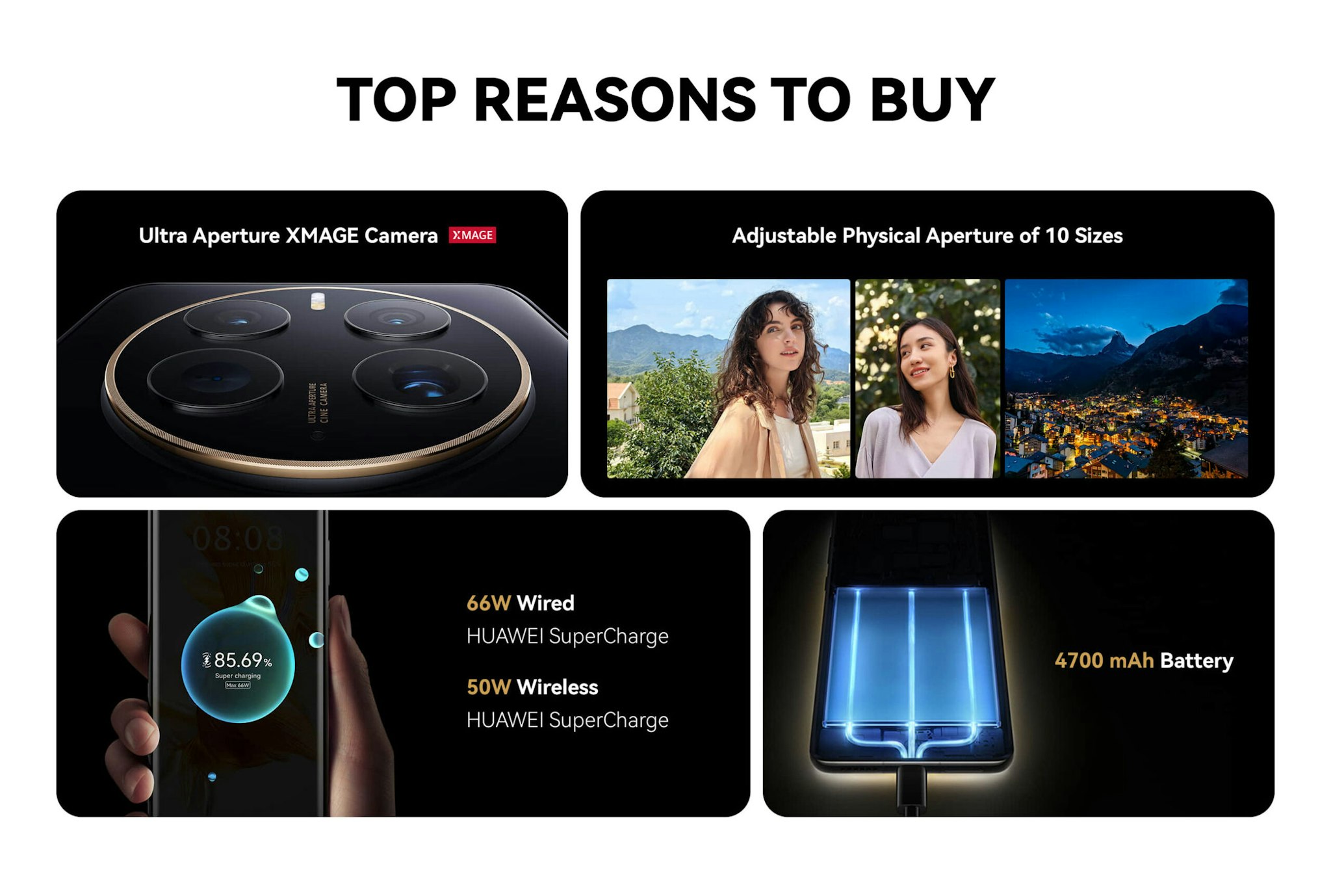- 50 MP Ultra Aperture Camera (F1.4~F4.0 aperture, OIS)